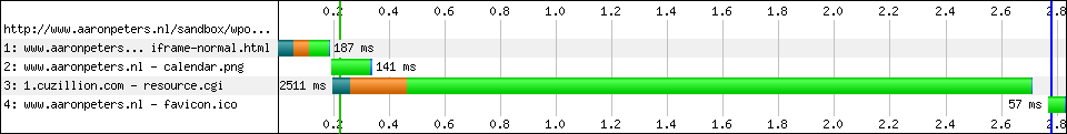 IE8 repeat view (note: my HTML is cached for 10 minutes, so only iframe content is reloaded). Click image for a bigger version